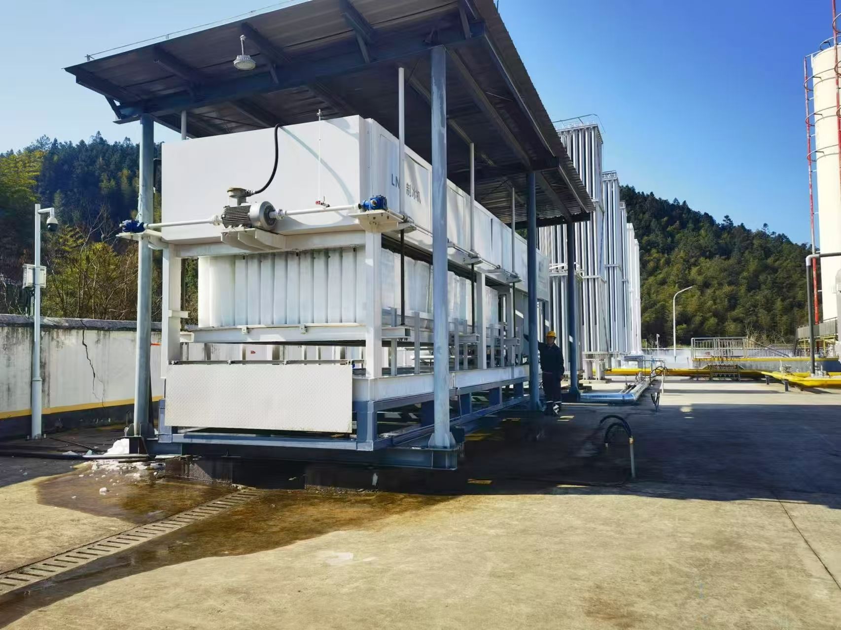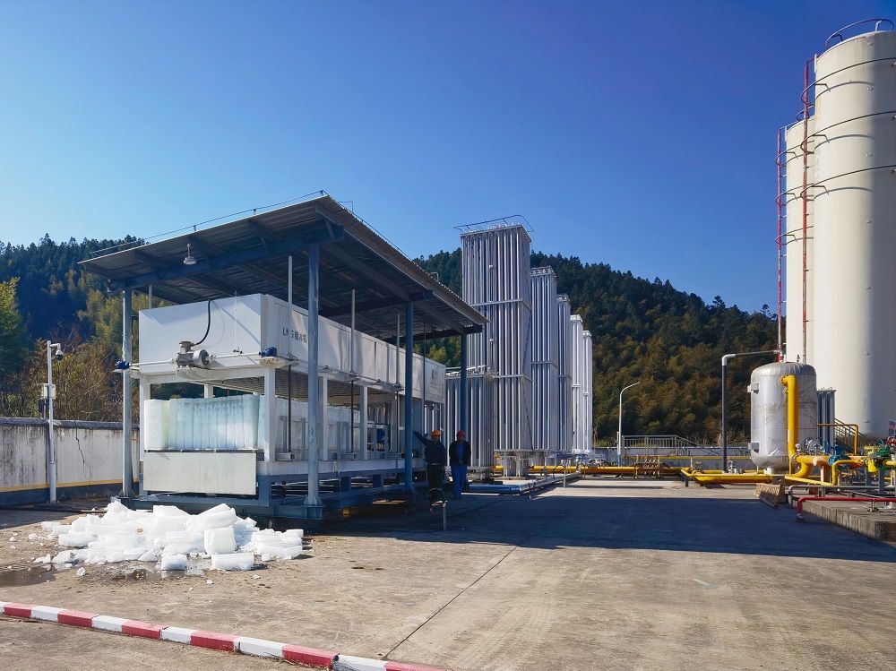 近日我司生產(chǎn)的LNG冷能制冰機順利交付,在龍巖華潤燃氣上杭平鋪LNG冷能利用項目中運行通暢,日出冰量30T,極大地為企業(yè)節(jié)約能源,實現(xiàn)節(jié)能減排,綠色生產(chǎn),為企業(yè)增產(chǎn)增效。