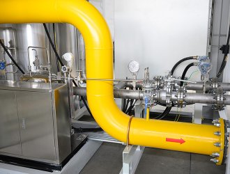 調(diào)壓計(jì)量撬是經(jīng)過主氣化器氣化后的氣體,由于等壓氣化壓力基本保持和儲(chǔ)罐壓力相近,一般用戶需求壓力是一個(gè)恒定的范圍內(nèi)的值,需要進(jìn)行調(diào)壓穩(wěn)壓。同時(shí)為了計(jì)量核算費(fèi)用或廠內(nèi)核算成本,對(duì)氣化后的LNG流量進(jìn)行計(jì)量,為了實(shí)現(xiàn)以上的功能組合在一起的裝置叫調(diào)壓計(jì)量撬。由矩形撬塊、調(diào)節(jié)匯管、控制閥、計(jì)量管、流量計(jì)、調(diào)節(jié)閥、調(diào)節(jié)管、過濾器、出氣管、進(jìn)氣匯管、進(jìn)氣口、出氣匯管、排污管和安全放氣閥組成。有的裝置內(nèi)需要加入加臭系統(tǒng)。